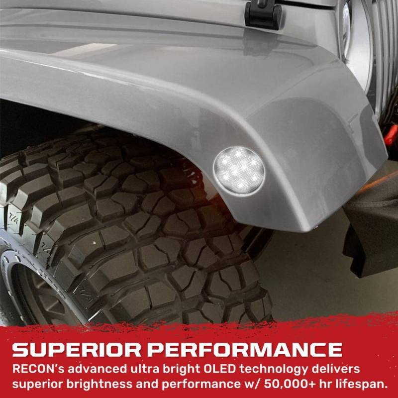 Recon 264135WHCL LED Front Side Fender Lenses Clear/White for 07-18 Wrangler JK