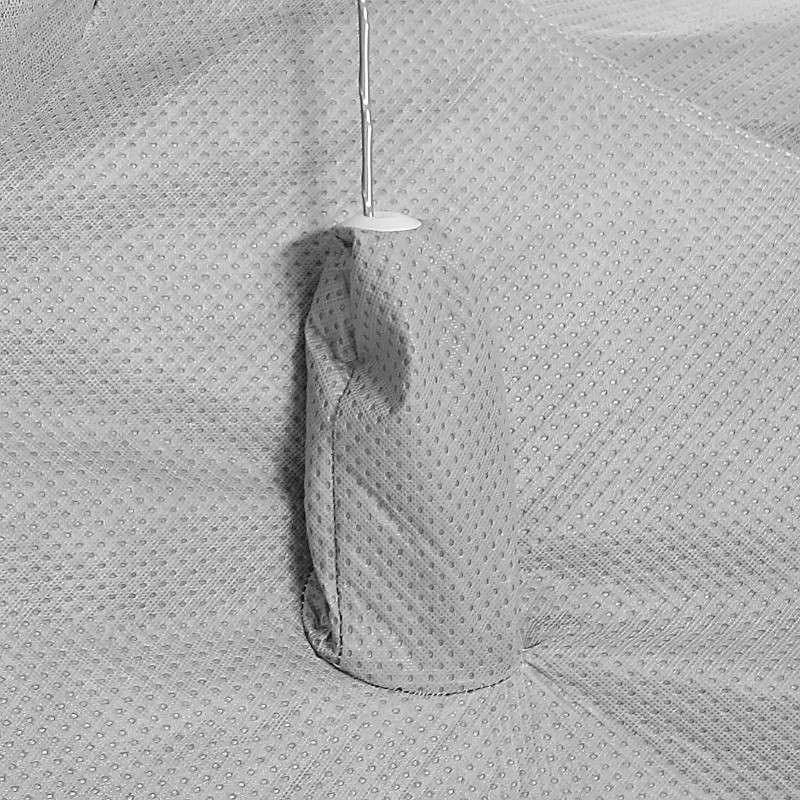 Constructed with new space age fabric, climate cover protects your vehicle from the elements while allowing the paint to breathe. Soft and durable fabric pampers paint finish and protects from sun, dirt, dust, moisture and pollution. The unique diamond bond pattern allows damaging trapped air & moisture to escape preventing paint deterioration. UV protection against sun and heat buildup and the spun bond polypropylene is a naturally water repellent material. Double stitched elastic hems for a custom fit. Gray with heavy-duty grommets. Bag, lock and cable included.