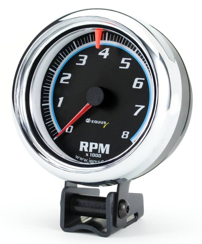 Equus E6078 Gauge Tachometer 3-3/8" 8k RPM Blk Dial Chrm Case 6000 Series