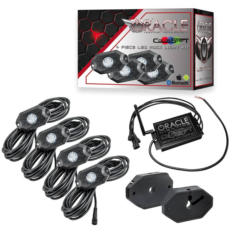 ORACLE Lighting Bluetooth ColorSHIFT Underbody Wheel Well Rock Light Kit - 4 PCS Change Colors, Control Brightness and Strobing, Select and Create DIY Scenes, and Control your Lights with your Music! ORACLE Lightings Off-Road Underbody LED Rock Light Kit will fit virtually any 4x4 off-road vehicle, Jeep or truck. With heavy gauge wiring and waterproof construction, this kit is built to last in the most extreme conditions. Our ColorSHIFT(tm) Technology allows you to select from thousands of colors! Control the functions and colors of your kit via the Bluetooth App, free to download in your app store. Heavy gauge wiring and waterproof construction