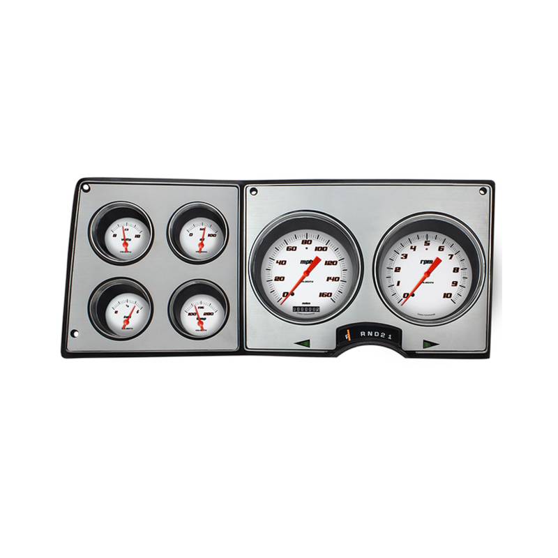 The Velocity White 1973-87 Chevy/GMC direct-fit cluster features a speedometer and tachometer, and fuel, oil, temperature, and volt gauges in our Velocity White series. The all-electric cluster arrives ready to install directly into the stock dash of 73-87 trucks, Suburbans, and Blazers, with ease. Simply replace the factory connector with the new connector included in the kit. It is designed to re-use the factory dash bezel and gear indicator to maintain the nostalgic integrity of the vehicle, and features an injection-molded light blue housing for a factory appearance. Additionally, the turn signals are in the stock location and it is designed so light reaches the gear indicator.;Everything needed to install the package is provided in the kit including a new lens and all necessary sending units.;It features our ZST™ and works directly with ECM or VSS signals requiring no additional control boxes. The cluster is designed to reuse the stock fuel sending unit or any aftermarket fuel sender (purchased separately) with the built-in ohm range selector switch. Whether you want to freshen up your stock look, or call us for customizations to make it your very own, our 1973-87 Chevy/GMC direct-fit cluster offers the perfect seamless installation you desire. ;