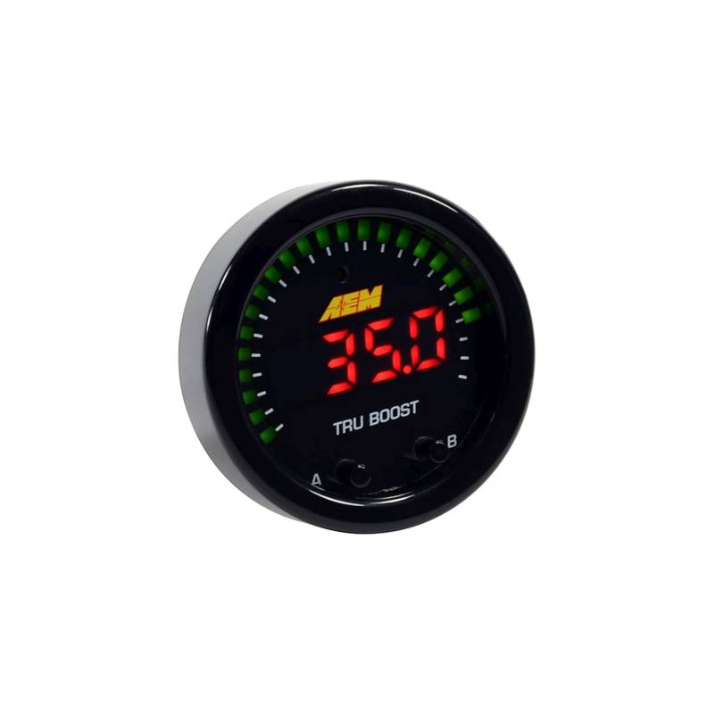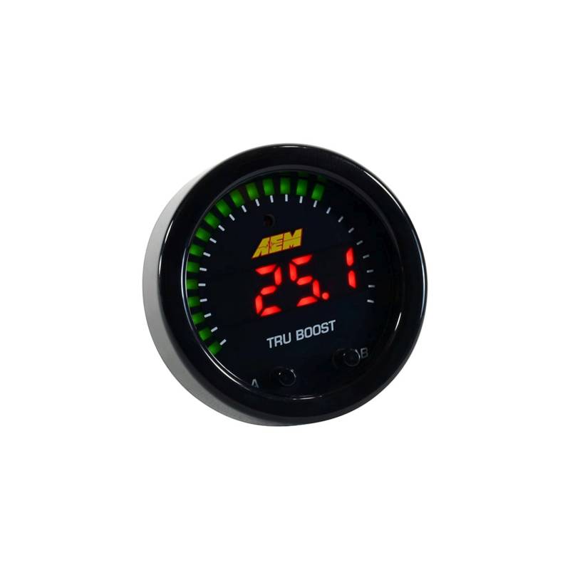 The Tru-BoostX Boost Controller Gauge delivers all of the features you loved about the original only now with AEMnet for data logging and a big, fat internal MAP sensor that can handle boost pressures up to 80 PSI of boost.\nThe Tru-BoostX Boost Controller gauge delivers digital accuracy but with the simplicity of a manual boost controller.\nAll AEM Tru-Boost gauge programming is done using the faceplate buttons and no laptop is required. AEM's specially designed Boost Control Solenoid and all necessary hardware is included.Program Two Boost Levels + Scramble Boost Setting - Program two boost modes for different levels of performance (up to 80PSIg internal MAP sensor), and program a time-based scramble boost setting that is controlled using a switched input. You can also turn off the controller and use the gauge as a display.Change Wastegate Open Pressure-Ideal for reducing boost spikes and improving spool up.Display Boost Levels in PSIg (PSI), BAR or kPa (PAS) -See your boost in the units you prefer, and scale the 24 outer LEDs to match your peak boost levels for the perfect sweeping motion.Set Alarms and Display Peak Boost-Set the 24 green outer LEDs to flash based on boost pressure so you are alerted to an overboost condition. A ground output is included for triggering an optional LED warning light. Select the "B" button to see peak boost level and clear the value using the menu.Overboost Protection Built In-Protects your engine from an overboost condition by shutting the boost control solenoid off until it is reactivated by you through the buttons on the faceplate.Integrated Error Protection-Alerts you to a fault if the boost control solenoid is shorted or disconnected so you are never left guessing whether the Tru-BoostX is operational.Datalog using AEMnet CAN bus-Outputting channels over AEMnet provides so much more than just boost pressure! Send 13 channels of data over a 2-wire connection, including boost pressure, peak boost, boost target, boost scramble duty, overboost status, wastegate crack pressure, boost control solenoid status and more.
