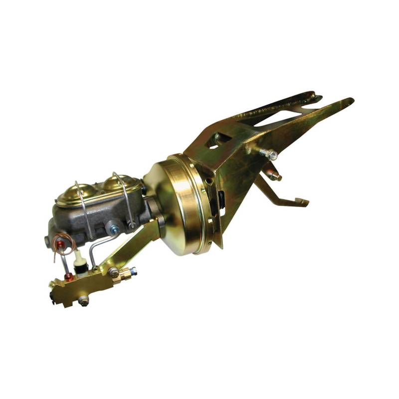 Brothers now offers a firewall mounted power brake conversion. Kit includes triangulated firewall bracket with swing pedal assembly, 8-inch single diaphram booster, master cylinder, proportioning valve and lines. This kit will work with disc/drum