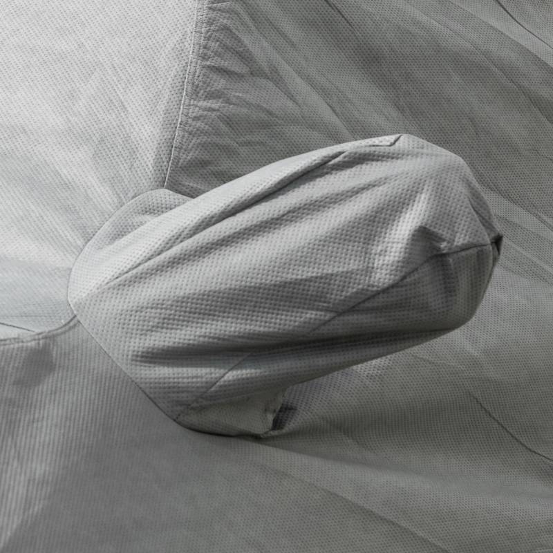 Constructed with new space age fabric, Smittybilt's Ford Bronco Full Climate Cover protects your vehicle from the elements while allowing the paint to breathe. Soft and durable fabric pampers paint finish and protects from sun, dirt, dust, moisture and pollution. The unique diamond bond pattern allows damaging trapped air & moisture to escape preventing paint deterioration. UU protection against sun and heat buildup. Double stitched elastic hems for a custom fit. Gray with heavy-duty grommets. Bag, lock and cable included.