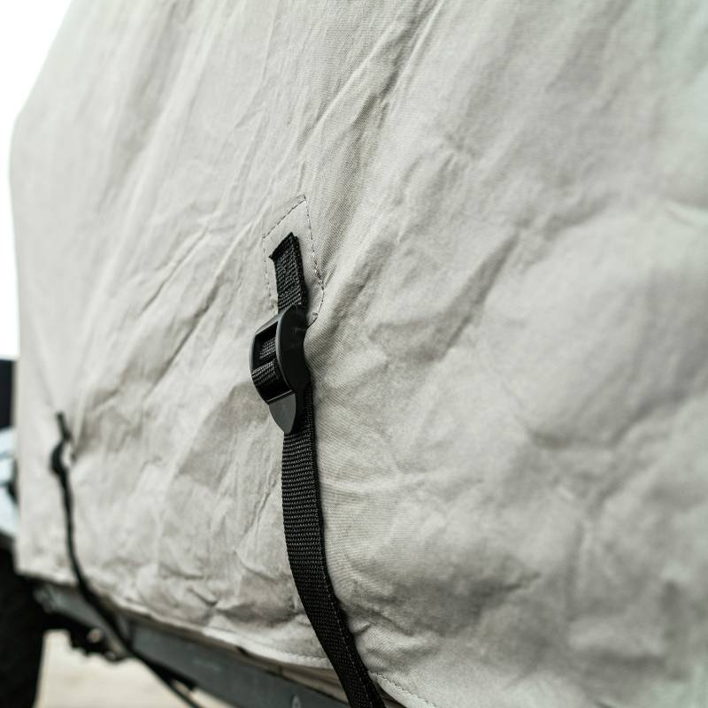 Constructed with new space age fabric, Smittybilt's climate cab cover protects your vehicle from the elements while allowing the paint to breathe. Soft and durable fabric pampers paint finish and protects from sun, dirt, dust, moisture and pollution. The unique diamond bond pattern allows damaging trapped air & moisture to escape preventing paint deterioration. UV protection against sun and heat buildup and the spun bond polypropylene is a naturally water repellent material. Double stitched elastic hems for a custom fit.