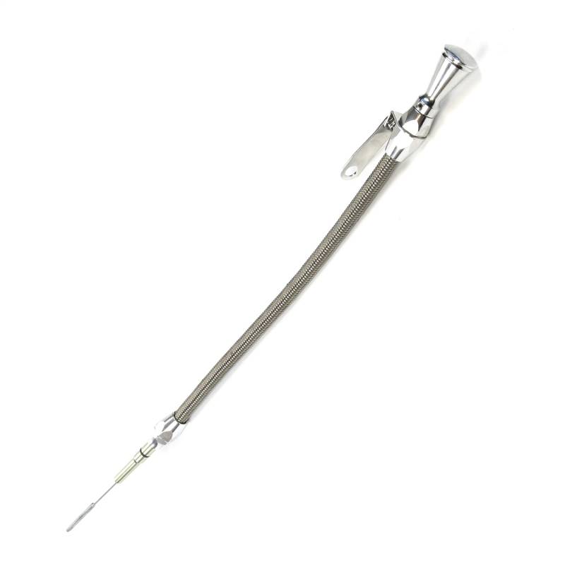 Lokar's Engine Dipsticks are made in the USA, and utilize a flexible braided stainless steel outer housing with an inner liner and are available in brite or black finishes. They include an E-Z to read flexible inner dipstick measuring cable for accurate measurement of engine oil fluid levels. Engine Dipsticks are available in locking and non locking configurations. Lokar offers Engine Dipsticks for many GM, Ford, and Chrysler engine applications.