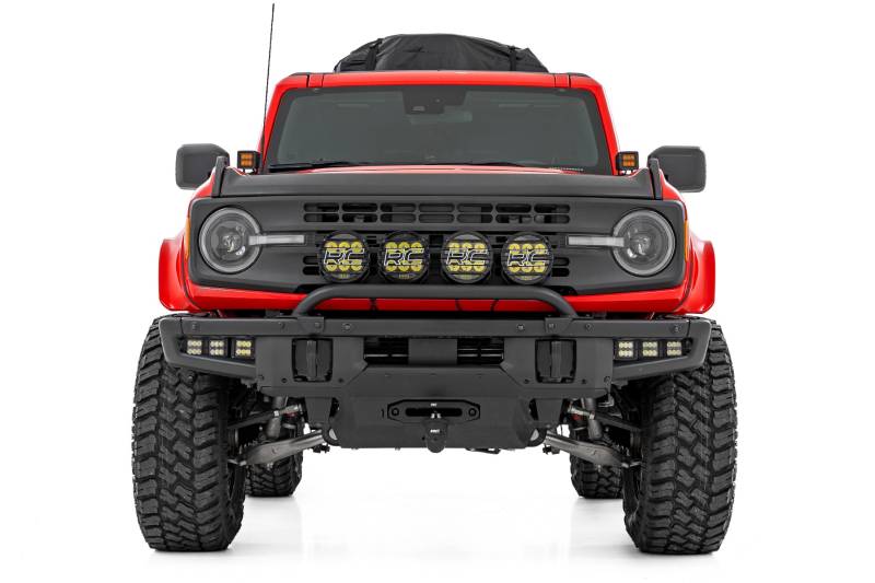 Bold Style & Extra Coverage: Give your Ford Bronco a commanding presence on and off the road with Rough Country's Fender Flares. Designed to enhance your Bronco's rugged appeal, these flares provide increased tire coverage to help shield your ride from mud, rocks, and road debris. Whether you're tackling tough trails or cruising through the city, these aggressively styled fender flares ensure your Bronco stands out from the crowd.Built for Durability: Engineered with everyday adventurers in mind, Rough Country Fender Flares are crafted from a high-strength Tri-Blend ABS material that delivers exceptional toughness without adding unnecessary weight. The UV-protected finish resists fading, ensuring your Bronco's flares maintain their bold look for years to come. Plus, the smooth surface allows for easy painting, so you can match them to your Bronco's color for a factory-style finish.Hassle-Free Installation & Warranty: Featuring a no-drill design, these fender flares install quickly and securely, getting you back on the road in no time. Need to return to stock? They can be easily removed without any hassle. Backed by Rough Country's 3-year limited warranty, you can trust these fender flares to deliver the quality and protection your Bronco deserves.