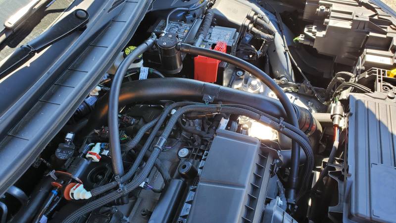 Oil Separator 3.0 Driver Side During the process of venting crankcase pressure back through your intake track, large amounts of oil, in the form of vapors can gather/accumulate in your intake tube, intake manifold runners and even dilute your gas, lowering its octane level. This happens on all engines and is even worse with forced inducted vehicles (supercharged and turbocharged) as crankcase pressures are increased. To combat this, we have developed an oil separator of our own design. Milled from solid billet aluminum this is a rock-solid piece. It has a knurled tank base for easy removal to drain the spent oil and an O-ring seal to prevent any leaks.
