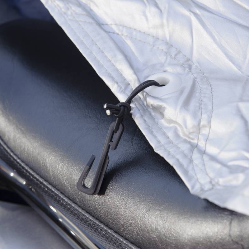 The Budge Sportsman standard motorcycle cover provides your motorcycle with standard protection from the elements. This motorcycle cover is designed from a heavy-duty polyester material and has a non-abrasive inner lining to prevent scratches, fading and other damages to your motorcycle's exterior. We've engineered this cover to be water-resistant to help protect your motorcycle during light rain showers. This cover features a full elastic hem to ensure a tight fit and keep the cover secure in windy conditions. This cover excels when used indoors as it prevents dust and debris from causing scratches of paint chipping to your motorcycle's exterior. The Budge Sportsman standard motorcycle cover is navy and silver in color and can easily fold into the included storage bag when not in use. Budge covers are guaranteed to keep your motorcycle protected against the elements. This motorcycle cover measures 96 in. L x 44 in. W x 44 in. H.