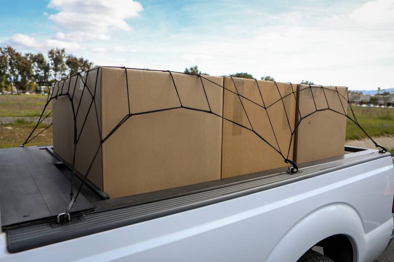 - Elastic bungee cord to securely hold cargo in your truck bed Fits Ford, Dodge, Chevy, GMC, Toyota, Nissan, and other trucks with 6ft - 8ft beds.