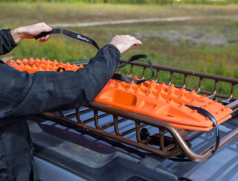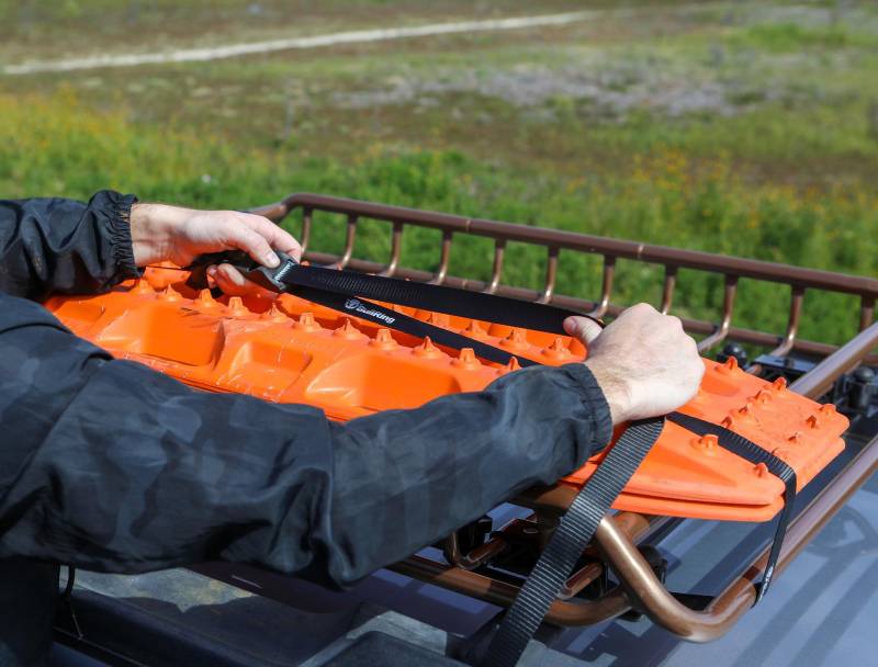 Each Lashing strap includes a built-in tie-up that holds any excess strap and prevents it from flapping in the wind.