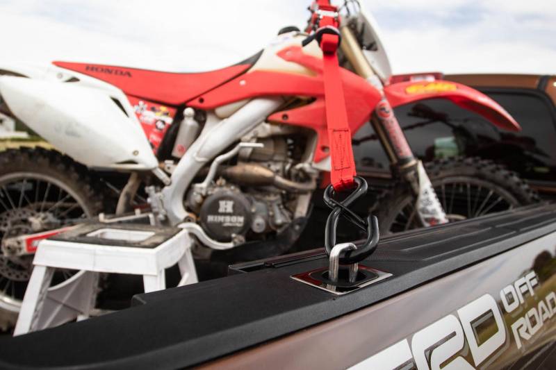 Each is made from stainless steel for a 1000lbs capacity, and comes with our no bull Lifetime Warranty. Requires a rail cap trim to be installed. Sold as a pair. Bull Ring's tie-down anchors are an essential Dodge Ram, Toyota Tundra, and Hyundai Santa Cruz truck bed accessory.