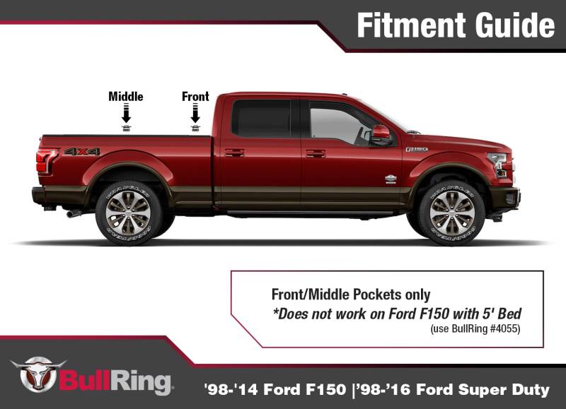Ford Flush Fit Retractable Tie Down Anchors 1998-2014 F150 1998-2016 Super Duty. Bull Ring's are the premium tie-down anchor point for your truck. While the stock anchors points are inside the bed where it's hard to reach, Bullrings retractable anchor points easily install into the stake pockets on top of your bed rails.