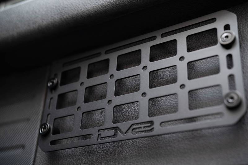 Strong 3mm steel molle panels with 1.5" x 1" cut-outs and extra 1/4" mounting holes for versatile gear storage. Includes spacers for offset mounting. Great for tools, recovery gear, and accessories in vehicles, garages, or workspaces. Micro-texture black powder coat finish. Drilling required. Available in 15” x 12”, 27” x 12”, and 23” x 15”.