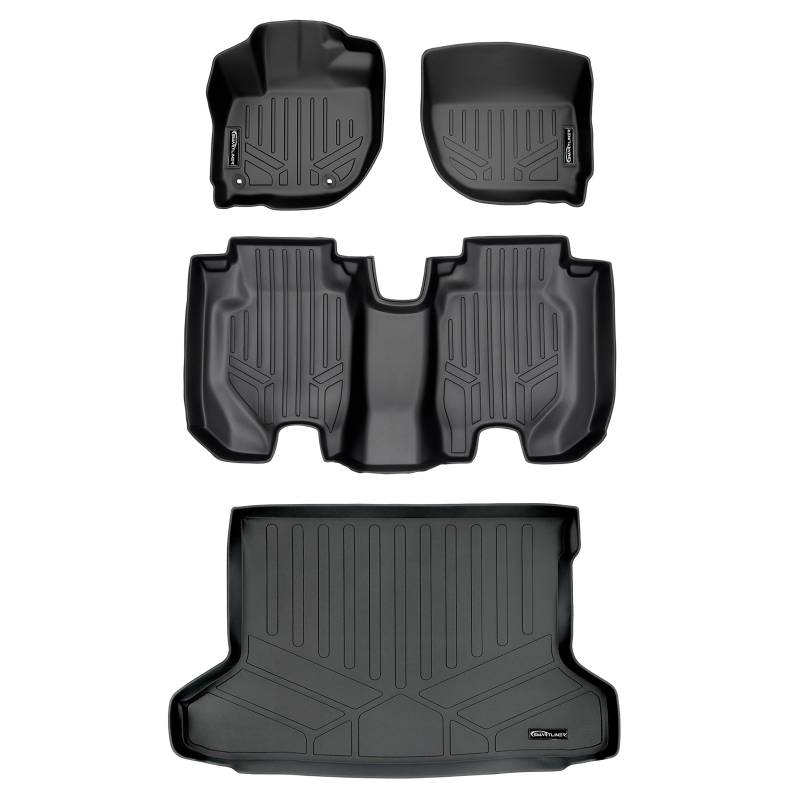 2 Row Floor Liners and Cargo Liner behind the 2nd Row Seats SMARTLINER floor liners are manufactured with a low-density polyethylene blend, so they leave no floor in your vehicle unprotected. With the help of the Smart Coverage raised lip and molded outer edge, these floor liners lock in all the dirt and liquid spills you can throw at it. Specifically, the raised lip prevents anything from reaching the carpet of your vehicle, protecting it from messy accidents. This designed shape is reinforced while still keeping the floor mat flexible. These floor liners also come in a multi-purpose, standard shape so they give the interior of your car the best fitting look possible. The SMARTLINER seeks to provide not just superior protection for your vehicle, but also enhances the overall appearance of your cars interior with its textured surfaces & modern design. Far more affordable compared with other brands. All weather protection against Snow, Mud, Sand, Salt Water and More! Spill Saver Lip (Prevents spills from reaching the carpet. ) Easy to Clean and Maintain (Detachable from Vehicle). All Smartliner USA products are meticulously engineered to fit each car exactly right.
