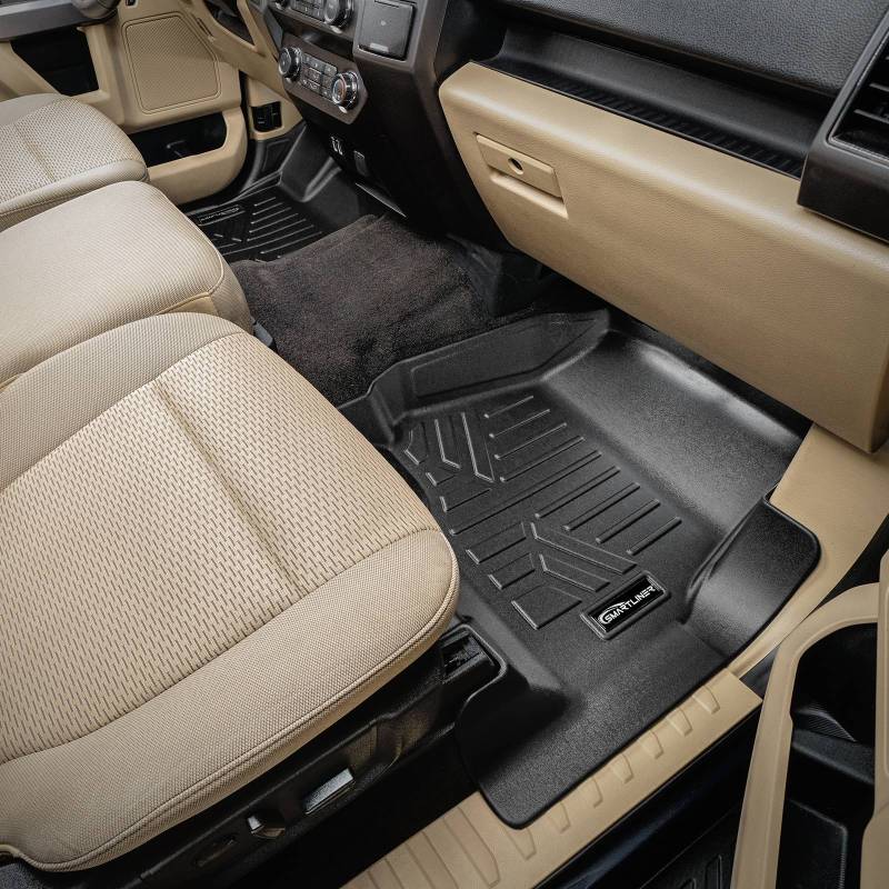 2 Row Floor Liners and Rubber truck Bed mat SMARTLINER floor liners are manufactured with a low-density polyethylene blend, so they leave no floor in your vehicle unprotected. With the help of the Smart Coverage raised lip and molded outer edge, these floor liners lock in all the dirt and liquid spills you can throw at it. Specifically, the raised lip prevents anything from reaching the carpet of your vehicle, protecting it from messy accidents. This designed shape is reinforced while still keeping the floor mat flexible. These floor liners also come in a multi-purpose, standard shape so they give the interior of your car the best fitting look possible. The SMARTLINER seeks to provide not just superior protection for your vehicle, but also enhances the overall appearance of your cars interior with its textured surfaces & modern design. Raised Edges: Tailored design with raised edges for enhanced fit and maximum coverage Precision Fit: Precision-engineered for full coverage Ultimate Durability: Built to wit'stand everyday demands All-Weather Performance: ?Ready for any conditions, from rain to snow