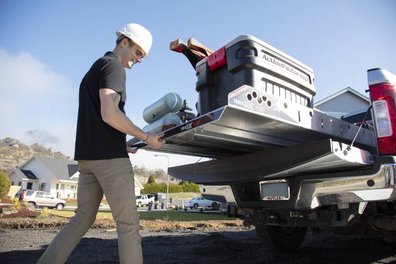 CUSTOM 1,200 POUND CAPACITY TRUCK SLIDE, 41.5" X 51" The Highway Products XT1200 Truck Slide allows you to slide the contents of your bed out to you rather than awkward reaching, bending, and crawling. The combination of expert engineering and premium materials allows the XT1200 truck bed slide to easily transport up to 1,200lbs and is backed by our Lifetime Warranty. 1,200lb capacity Never crawl into your truck bed again! Work smart: Stay organized, save time, and save your back All heavy-duty metal construction No Plastics. No Wood. No composites. No Cables.