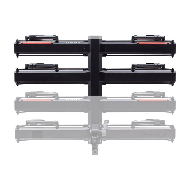 Piston Pro X Add-On - 2-Bike Loading our 3 or 4-bike hitch rack is so easy you can do it with one hand.Simply hit the OneTap Piston levers and watch as the cradle arms open automatically into position. The FastFit Wheel Chock feature allows you to change the hitch rack on the fly to hold wheels from 18" to 29" in seconds, tool-free.Of course, these Add-Ons have some of the same amazing features as the 2-bike Piston Pro X hitch rack. Features like no contact on the bike frame, all-metal construction, semi-integrated cable locks, and bombproof materials like Genuine Kashima-coated struts and Tiger Drylac powder coating.All features are designed to ensure your hitch rack not only functions flawlessly for years but drops jaws the whole time, too. Transporting heavier electric bikes? Our Piston Pro X 3-bike hitch rack will hold up to 50 pounds per tray and our Piston Pro X 4-bike hitch rack will hold up to 40 pounds per tray.We even have an e-bike ramp to make loading and unloading your electric bike a breeze.Expand your vehicle's carrying capacity (and your circle of friends) with help from the Piston Pro X Add-Ons. 99% metal construction OneTap levers make loading your bikes easy, and fun Genuine Kashima coated struts ensure your rack not only functions flawlessly for years No Fade powdercoat.