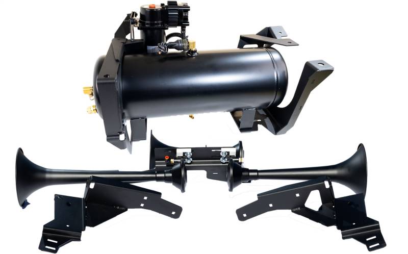 Onboard Air System w/Horns; Includes Triple Black Horns PN[730]/ 150/200 PSI Air Compressor PN[6450RC]/ 3.0 Gallon Air Tank PN[6350RT];
