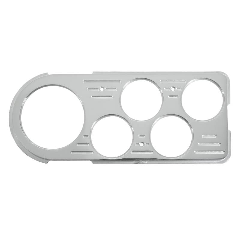 DASH PANEL, FORD TRUCK 48-50, 1 X 3-1/8", 4 X 2-1/16", BILLET Modification to an original dash can be a daunting task. AutoMeter makes it easy with a range of direct fit replacement dash panels that perfectly house AutoMeter instruments. Precision engineered and machined in the USA from billet aluminum, these panels drastically simplify the process of gauge installation while providing a clean, timeless look. Direct Fit gauge dash panel replaces original instruments in 1948-1950 Ford Trucks and accomodates 5 AutoMeter gauges. Machined from billet aluminum in polished finish with ball milled details. Gauges mount from front of plate. Pre-drilled to accept 3 LED lights (optional part #3283) for turn signals and high beam indicator. Fits one AutoMeter 3 1/8" instruments and four 2 1/16" gauges which feature a Street Rod bezel style. Will not accommodate gauges with Super, Monster, or SAE bezels.