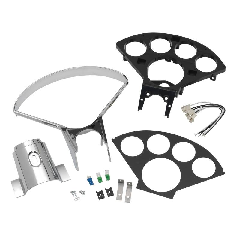 GAUGE MOUNT, DIRECT FIT DASH PANEL, (3 3/8", 2 1/16" X4), CHEVROLET 55-56 Direct Fit Replacement For 55-56 Chevy Cars. Fits One 3-3/8" Gauge And Four 2-1/16" Gauges. Features Hidden Turn Signals And High Beam Indicators. Direct fit panel replaces factory gauge panel Fits one 3-3/8" gauge & four 2-1/16" gauges Includes hidden high beam indicator and turn signal indicators Includes gauge mounting hardware and installation instructions