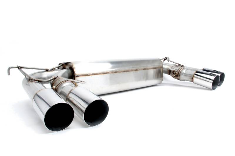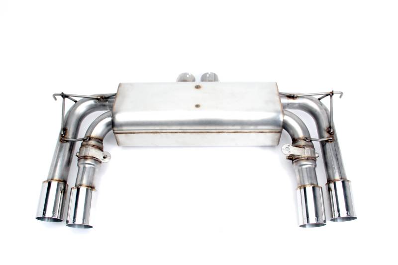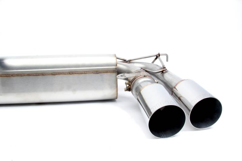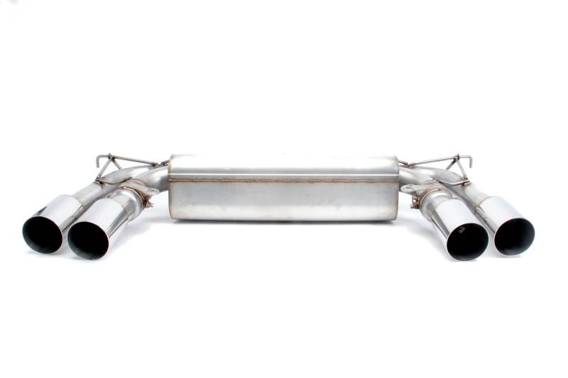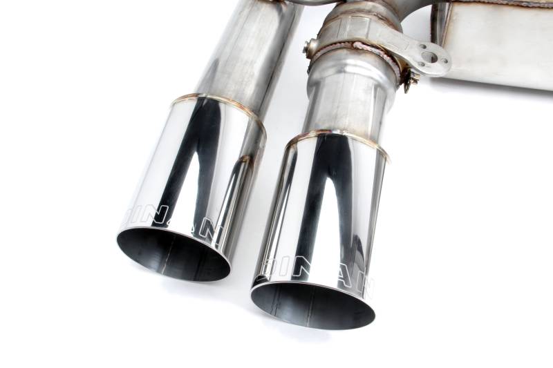 The F85 X5M and F86 X6M are the quintessential SUV in terms of power and performance with accolades in numerous periodicals crowning them the pinnacle of their class. With the possibility of putting down over 700 HP with a base tune, these vehicles are no slouch. Dinan engineers wanted to match this impressive feat with an equally impressive exhaust tone that let those around these SUV's hear the power that lies beneath the hood as well as be able to show it.\nThe exhaust system was designed to improve exhaust flow by reducing back pressure, resulting in increased power output and a deep sound that is civilized when you want it to be, and pleasantly aggressive under hard acceleration. Dinan also incorporates a Helmholtz chamber design that reduces resonance or"drone" at low RPM. The technology within the can is matched in impressiveness by its outward appearance and design as the system is built to exacting specifications to ensure a simplistic bolt-on installation. It is made from 100% 16 gauge 304 stainless steel and will resist corrosion for years to come. The design features quad 89mm (3.5") black ceramic or polished exhaust tips for a tasteful high-performance look.