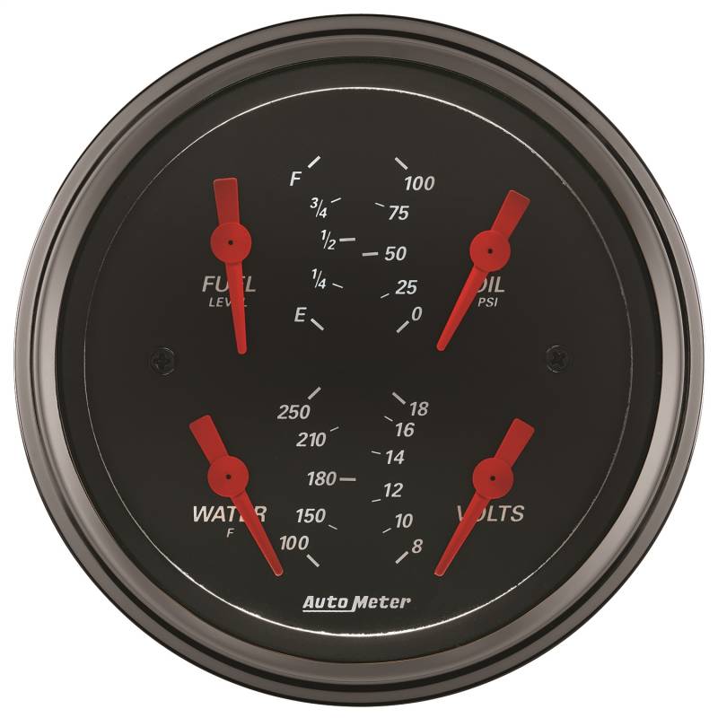 Sometimes space is limited. The AutoMeter Quad Gauge provides a solution to limited dashboard space while providing a clean look. Individual AutoMeter air core meter movements for each function provide the accuracy and durability required by even the most demanding applications. Includes a single wire 1/8 in. NPT temperature sender and a 1/8 in. NPT oil pressure sender. The voltmeter reads from 8-18v on negative ground electrical systems and fuel level resistance range is 0 ohms empty to 90 ohms full (compatible with Amid 60's through mid 90's GM fuel level senders).