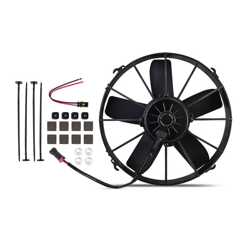 Race Line, High-Flow Fan, 12in Provide your radiator with the maximum amount of airflow with our new 12in Race Line fan. Our Race Line fans were designed for heavy-duty applications where a Slim Line fan just won't cut it. However, this robust fan is still thin enough to fit between your engine and radiator in most applications and provides 1850 CFM of airflow to cool the largest and most powerful of engines! For universal installation, use the Mishimoto Electric Fan Mounting Kit. High-flow fan provides increased airflow Compact design with a housing diameter of 13-in and an overall thickness of 3.90-in provides sufficient clearance in the engine bay Universal fitment