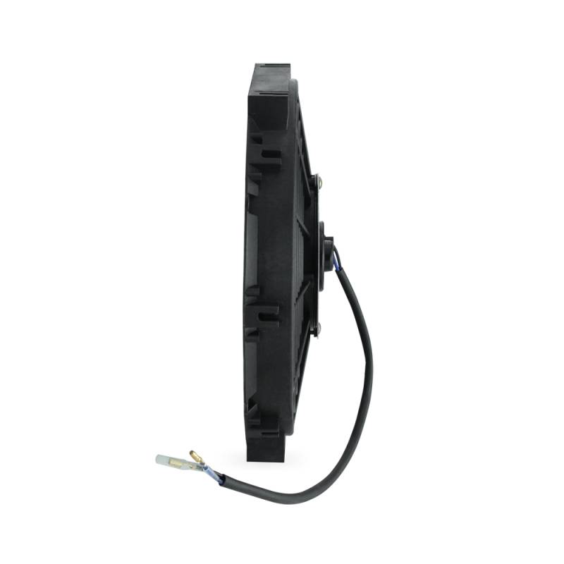 Mishimoto Curved Blade Electric Fan 10in This curved blade fan can be used as an upgrade to the OEM fan for more efficient cooling or fitment issues with aftermarket products. With its slim design, the fan can easily be installed flush against a radiator. For universal installation, use Mishimoto universal fan mount kit. (P/N: MMFAN-MOUNT) High-flow fan provides 950 cfm of airflow Universal fitment Compact design with a diameter of 10-in and an overall thickness of only 2.36-in provides increased engine bay space