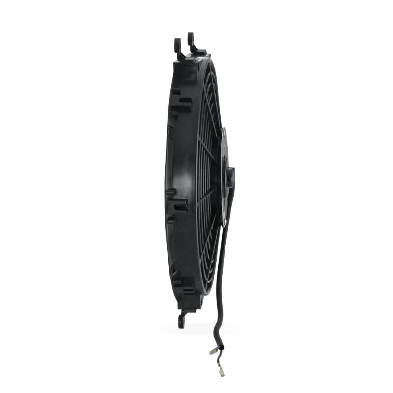 Mishimoto Curved Blade Electric Fan, 12in This curved blade fan can be used as an upgrade to the OEM fan for more efficient cooling or fitment issues with aftermarket products. With its slim design, the fan can easily be installed flush against a radiator. For universal installation, use Mishimoto universal fan mount kit. (P/N: MMFAN-MOUNT) High-flow fan provides 1150 cfm of airflow Universal fitment Compact design with a diameter of 12-in and an overall thickness of only 2.5-in provides increased engine bay space