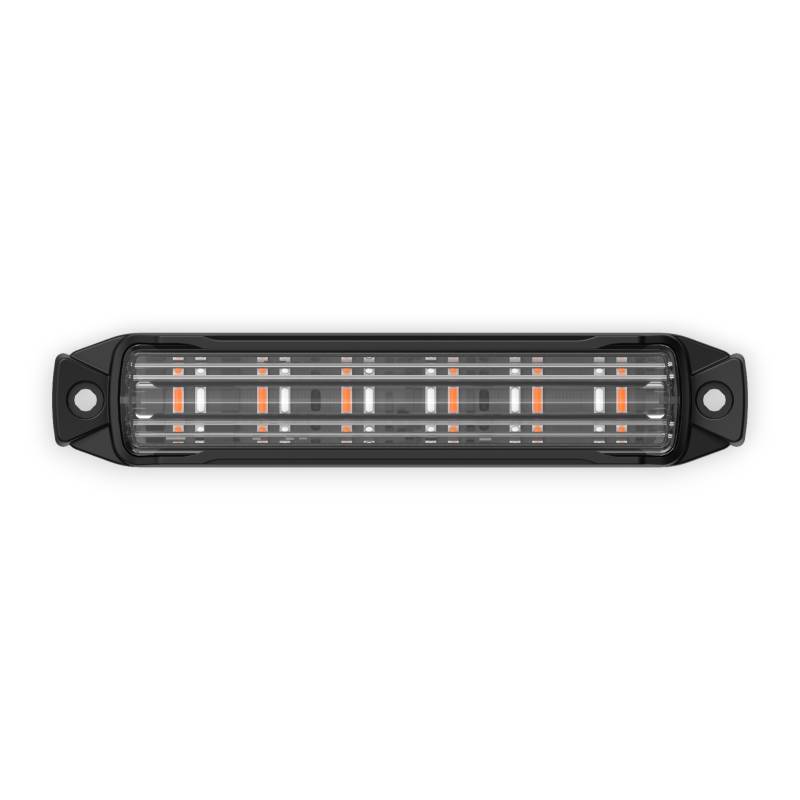 The Work Bar Strobe 4 features a strong polycarbonate lens on an aluminum body and an aluminum protective bezel to maximize protection from debris impact and to absorb heat dispersion. This product can be fitted virtually anywhere on a vehicle in a fit-and-forget-it fashion. Boasting major industry requirements such as IP69K, SAE Class I and EMC R10, the product is backed with a five (5) year warranty. 12 and 24 VDC compatible Meets SAE J595 Class I, California Title 13, ECE R65, and R10 requirements 12 high-intensity LEDs behind a proprietary optical lens 3 user-programmable modes Dual color: Amber and Blue