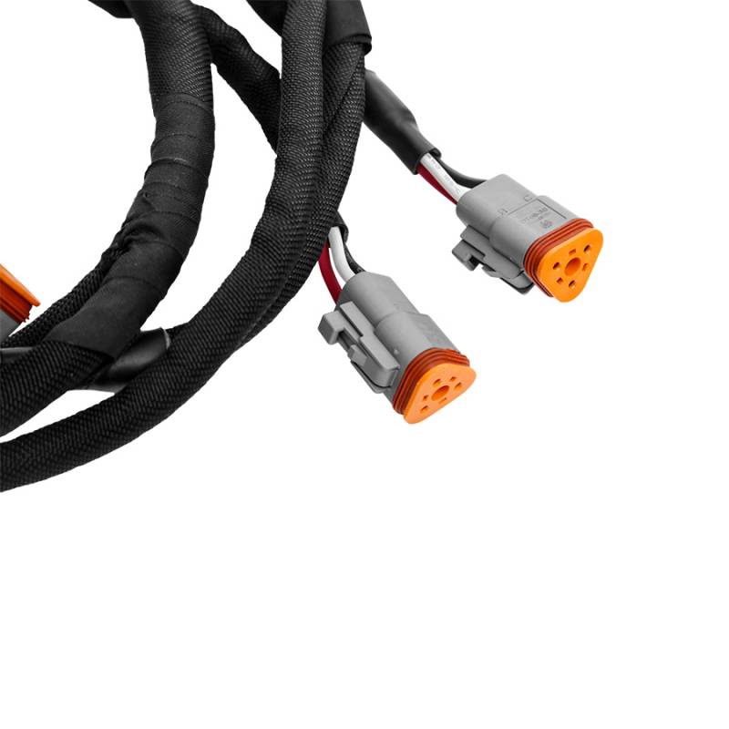 PROJECT X SERIES ONE Roof Light Bar Splitter Harness Introducing the PROJECT X - 6 Light Roof Harness, a streamlined solution for off-road enthusiasts looking to enhance their vehicle's lighting capabilities. This harness is specifically designed for seamless integration with the SERIES ONE LED lights, making it an indispensable component for your roof bar installation.Efficient Power Distribution: The harness correctly splits 12V power, DRL power supply, and ground wires from a single source to six lights. This means you can power up to six of your SERIES ONE Roof lights effortlessly, ensuring a consistent and reliable power supply for optimal lighting during your off-road adventures.Easy Plug-in Design: Say goodbye to complex wiring challenges. The harness comes equipped with three-prong Deutsch connectors, allowing for a straightforward plug-and-play installation to your SERIES ONE lights. This design ensures that you can easily connect the harness to your lights existing wiring ports without any fuss.Professional-Grade Wiring: With the PROJECT X harness, youre wiring like a pro. Theres no need for stripping, crimping, or using plastic wire looms. The harness is professionally constructed and sl eeved, offering not only a clean and organized look but also ensuring long-lasting performance and protection.Ghost Box Compatibility: For those who prefer a wireless approach, the harness is fully compatible with the PROJECT X Ghost Box Wireless Accessory Control Ecosystem. This compatibility allows for an even more streamlined installation process, making it easier than ever to control your lighting setup.Ideal for truck and off-road vehicle owners who value efficiency and simplicity in their setups, the 6 Light Roof Splitter Harness is a testament to PROJECT Xs commitment to quality and innovation. Whether youre an experienced off-roader or just starting out, this harness is designed to make your lighting installation quick, easy, and effective. Split the Power - This harness is the perfect solution to easily wire up 6 of your SERIES ONE Roof lights to a single source. Seamless Plug-in Design - These harnesses feature three-prong deutsche connectors allowing you to simply plug them into your light's existing wiring ports. Wire Like a Pro - No more stripping, crimping or plastic wire looms. Our harnesses are professionally constructed and sleeved to ensure performance and protection that lasts as long as our lights do. Ghost Box Ready - Combine this harness with our Ghost Box Wireless Accessory Control Ecosystem to make your wiring and light installation quick and easy.
