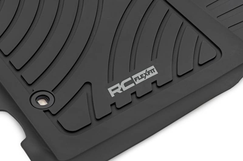 Introducing Flex-Fit floor mats, the ultimate enhancement for your truck's interior, and built tough to handle any challenge. Crafted from premium rubber-like material, these mats are as durable as they come, perfectly tailored to fit your truck's unique shape for a seamless finish.Stock floor mats just don't cut it for adventurers. They get trashed by mud, don't hold up to spills, and leave your carpets a mess. Give your ride the all-weather protection it deserves with Rough Country's Flex-Fit Floor Mats, the perfect solution for keeping your vehicle clean and protected.All-Weather Protection: Engineered to fit your vehicle perfectly, these mats provide top-notch defense against snow, mud, sand, saltwater, and more.Spill Saver Lip: Don't sweat the spills! Our mats feature a Spill Saver Lip that prevents liquids from reaching your carpet, so you can enjoy your coffee on the go without worry.Non-Slip, Textured Surface: Stay in control no matter the terrain with our mats' non-slip, textured surface, designed to keep your feet firmly planted while driving.Easy to Clean and Maintain: Cleaning up is a breeze! These mats are detachable and easy to clean, so you can spend less time on maintenance and more time hitting the road.Premium Materials: Constructed from a rubber-like TPE material, these mats are built to withstand extreme temperatures without cracking or warping. They will stay flexible and functional for the long haul.Effortless Installation: Forget wrestling with bulky mats. Flex-Fit Mats slide right into place for a quick and frustration-free installation.Upgrade your truck's defense against the elements with Rough Country's Flex-Fit Floor Mats. They'll keep your carpets looking fresh and give you peace of mind on every adventure.