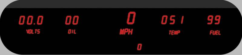 The kit includes digital LED panel, smoke Plexiglas lens, universal speedometer sending unit, oil pressure sending unit, water temperature sending unit and mounting hardware. Fuel gauge is programmable for Ford, GM, Chrysler, VDO and universal aftermarket senders. All kits utilize “CREE” LEDs and “PIC” Micro processors. Made in USA.