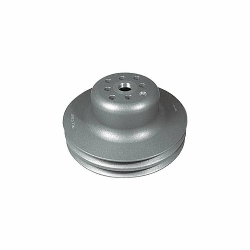 Specifically for short or Corvette water pumps, pulleys work with power steering pump and pulley to provide a ratio within the GM specified RPM range. Race engine RPM differs greatly from street engines. For 30% less water pump speed and reduced weight and inertia, the crankshaft and water pump pulleys are smaller in diameter than standard reduction pulleys. Acceleration capabilities are greatly enhanced.