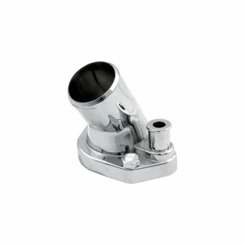 Cast aluminum 45 degree water neck fits small block Ford. Includes an O-ring for sealing the base flange and two hex head bolts.