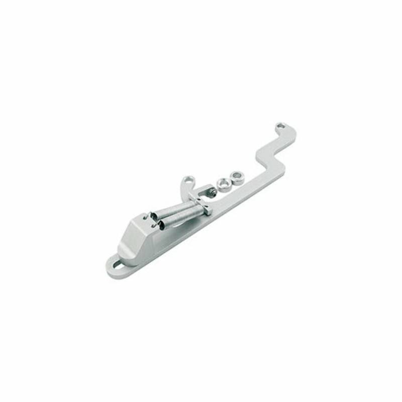 Billet aluminum bracket can be used with cable or mechanical linkage. Bracket fastens to carb mounting studs and includes dual stainless steel return springs which are adjustable for tension. A specially designed return spring arm attaches to the carb for simplified installation and smooth operation. Low profile design
