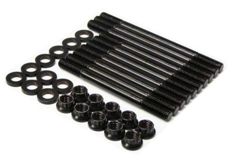 There are many important reasons to use ARP main stud kits, including the elimination of main cap walk and fretting, as well as protecting the threads in your engine block. All kits come complete with hardened parallel-ground washers and high quality nuts. Some applications have provisions for mounting windage trays and have specially designed standoff studs with serrated lock nuts to position the windage tray and lock it securely in place. The studs are manufactured from 8740 chrome moly steel, heat-treated in-house to 200,000 psi tensile strength, and precision J-form threads rolled after heat-treat to create a fastener that has threads 1000% stronger than others.