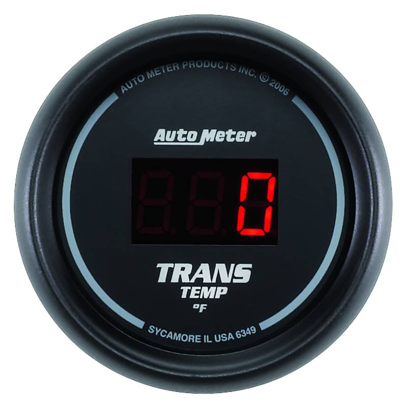 GAUGE, TRANS TEMP, 2 1/16", 340?F, DIGITAL, BLACK DIAL W/ RED LED Transmission Fluid Temperature Is The Single Biggest Contributing Factor To The Lifespan Of Your Automatic Transmission. Having An Accurate, Realtime Measurement Allows You To Know When To Downshift Or When To Take Your Foot Out Of It. Whether You" Re Towing Or Simply Trying To Harness The Power Of A Built Or Boosted Motor, Autometers Digital Trans Temp Gauge Will Give You The Most Accurate Possible Measurement For The Exact Temp Of Your Trans Fluid. Autometers Most Advanced 1/8" Npt Temperature Transducer Is Included As Well As A Direct Plug In Wiring Harness For Ease Of Installation. An Optional Trans Cooler Line Manifold Is Available For Another Easy Installation Option. Features Autometers E-Z View Digital Led Display System Which Maximizes Readability And Minimizes Distracting High Speed Digit Changes Includes data acquisition grade solid-state temperature sender, providing unmatched accuracy and durability even in the harshest environments Autometers Race Proven Digital Stepper Motor Electric Instruments Provide Unmatched Accuracy While Keeping Hazardous Fluids Outside Of The Vehicle Gauge kit includes 1/8" NPT temperature sender, 3/8" and 1/2" NPT adapters, wiring harness, mounting hardware, and detailed instructions for installation 12 and 16 volt compatible, well-suited with nearly every street car or race car electrical system
