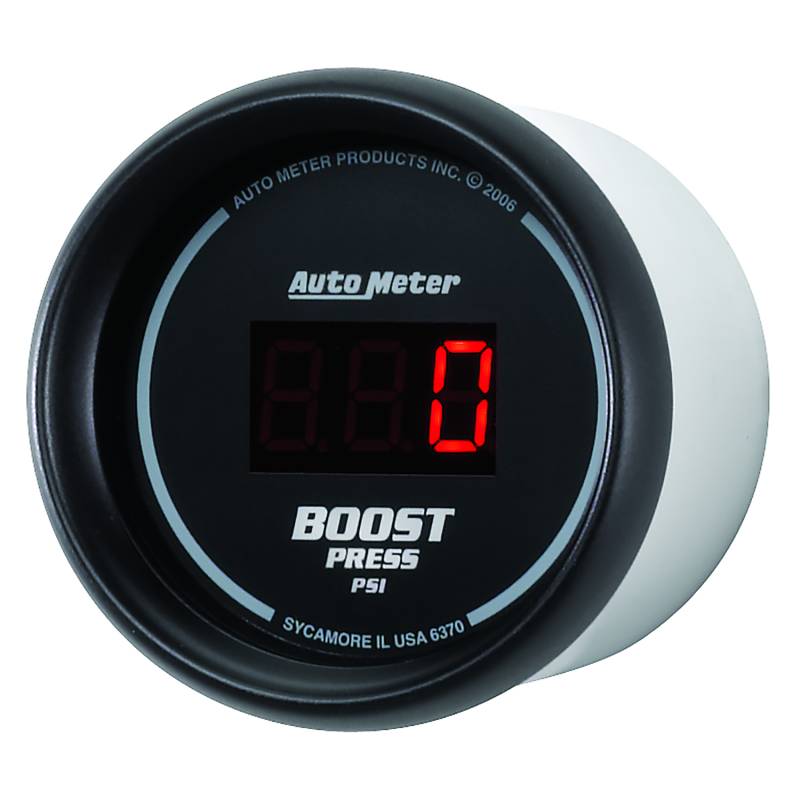 GAUGE, BOOST, 2 1/16", 60PSI, DIGITAL, BLACK DIAL W/ RED LED An Ultra High Precision Digital Gauge Engineered For Diesel Applications But Also Perfect On Higher Boost Gasoline Engines. Using Autometers Advanced 1/8" Npt Solid State Pressure Transducer, This Gauge Provides The Ultimate In Accuracy For Forced Induction Applications Producing From 5-60 Psi. A Direct Plug In Wiring Harness Is Included For Ease Of Installation. Digital Boost/Vacuum Gauges Are Also Available For Gasoline Or Lower Boost Applications. Features Autometers E-Z View Digital Led Display System Which Maximizes Readability And Minimizes Distracting High Speed Digit Changes Includes data acquisition grade solid-state pressure transducer, providing unmatched accuracy and durability even in the harshest environments Autometers Race Proven Digital Stepper Motor Electric Instruments Provide Unmatched Accuracy Which Is Further Increased By Utilizing A Self Calibration Sequence During Power Up Gauge kit includes 1/8" NPT stainless steel pressure transducer, wiring harness, mounting hardware, and detailed instructions for installation 12 and 16 volt compatible, compatible with nearly every street car or race car electrical system