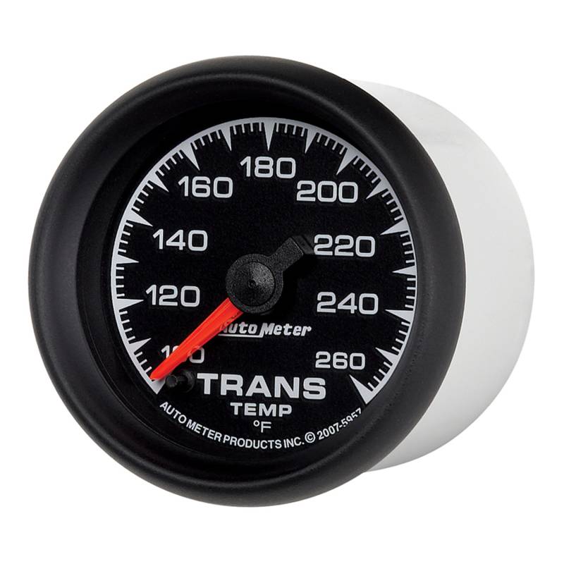 GAUGE, TRANSMISSION TEMP, 2 1/16", 100-260?F, DIGITAL STEPPER MOTOR, ES Transmission Fluid Temperature Is The Single Biggest Contributing Factor To The Lifespan Of Your Automatic Transmission. Having An Accurate, Realtime Measurement Allows You To Know When To Downshift Or When To Take Your Foot Out Of It. Whether You" Re Towing Or Simply Trying To Harness The Power Of A Built Or Boosted Motor, Autometers Digital Stepper Motor Trans Temp Gauge Will Give You The Most Accurate Possible Measurement For The Exact Temp Of Your Trans Fluid. Autometers Most Advanced 1/8" Npt Temperature Transducer Is Included As Well As A Direct Plug In Wiring Harness For Ease Of Installation. An Optional Trans Cooler Line Manifold Is Available For Another Easy Installation Option. Modern red LED through-the-dial lighting provides clear visibility during nighttime use Gauge kit includes 1/8" NPT temperature sender, 3/8" and 1/2" NPT adapters, wiring harness, mounting hardware, and detailed instructions for installation Includes data acquisition grade temperature sender, providing unmatched accuracy and durability even in the harshest environments Autometers Race Proven Digital Stepper Motor Electric Instruments Provide Unmatched Accuracy While Keeping Hazardous Fluids Outside Of The Vehicle The accuracy of digital stepper motor gauges is further increased by utilizing a self calibration sequence during power up
