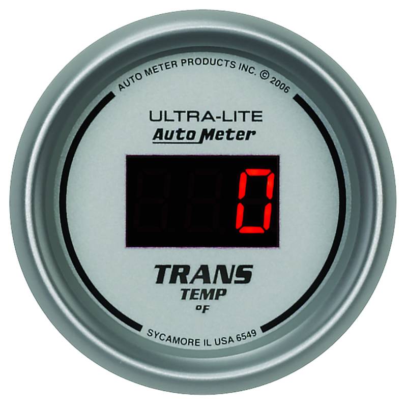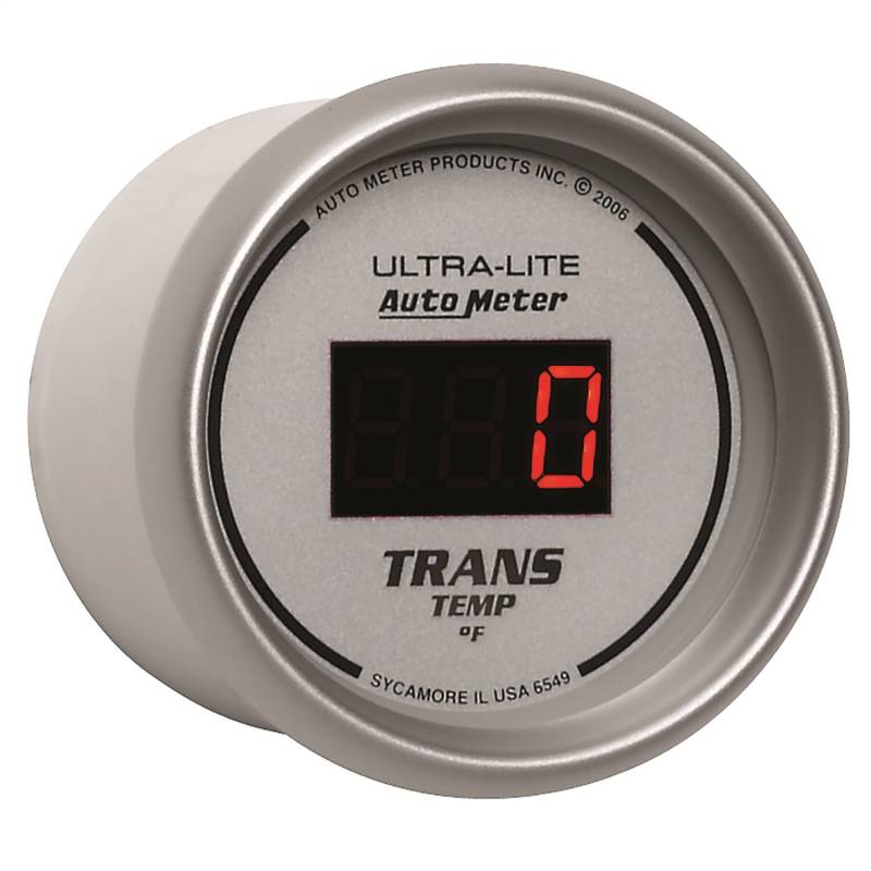 GAUGE, TRANS TEMP, 2 1/16", 340?F, DIGITAL, SILVER DIAL W/ RED LED Transmission Fluid Temperature Is The Single Biggest Contributing Factor To The Lifespan Of Your Automatic Transmission. Having An Accurate, Realtime Measurement Allows You To Know When To Downshift Or When To Take Your Foot Out Of It. Whether You" Re Towing Or Simply Trying To Harness The Power Of A Built Or Boosted Motor, Autometers Digital Trans Temp Gauge Will Give You The Most Accurate Possible Measurement For The Exact Temp Of Your Trans Fluid. Autometers Most Advanced 1/8" Npt Temperature Transducer Is Included As Well As A Direct Plug In Wiring Harness For Ease Of Installation. An Optional Trans Cooler Line Manifold Is Available For Another Easy Installation Option. Features Autometers E-Z View Digital Led Display System Which Maximizes Readability And Minimizes Distracting High Speed Digit Changes Includes data acquisition grade solid-state temperature sender, providing unmatched accuracy and durability even in the harshest environments Autometers Race Proven Digital Stepper Motor Electric Instruments Provide Unmatched Accuracy While Keeping Hazardous Fluids Outside Of The Vehicle Gauge kit includes 1/8" NPT temperature sender, 3/8" and 1/2" NPT adapters, wiring harness, mounting hardware, and detailed instructions for installation 12 and 16 volt compatible, well-suited with nearly every street car or race car electrical system