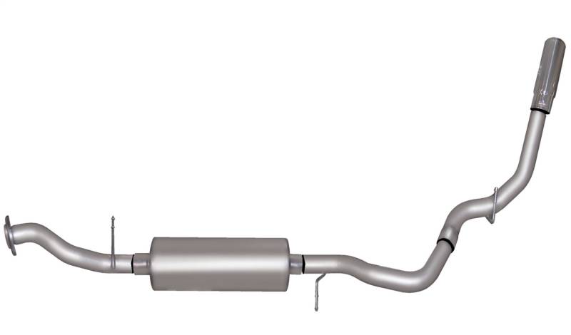 Single Exhaust System Gibson Single Side Exhaust is perfect for improved acceleration, maximum hill climbing, towing and passing power. This is our best performing Exhaust System. Exits behind the rear tire. Quieter in the cab than any other Performance Exhaust. Dyno test results show it makes maximum torque and horsepower at low-end (1800 to 3000 RPM). Horsepower gains average 10-15 and 15-20lb-ft of increase torque. Hassle free, bolt-on installation with professional looking results. No welding required. Backed by a Lifetime Limited Warranty. Stainless Steel Mandrel Bent Tubing Superflow™ Muffler Baffled/Chambered Muffler; No Internal Packing Minimal Interior Drone - Aggressive Sound Polished Stainless Steel Slash-Cut Tips