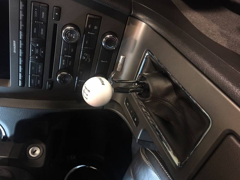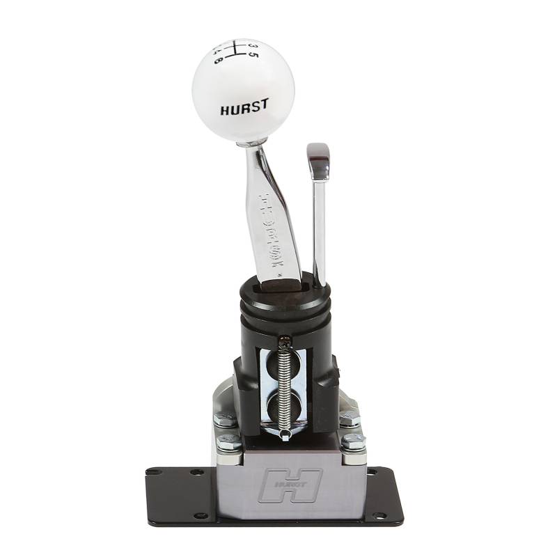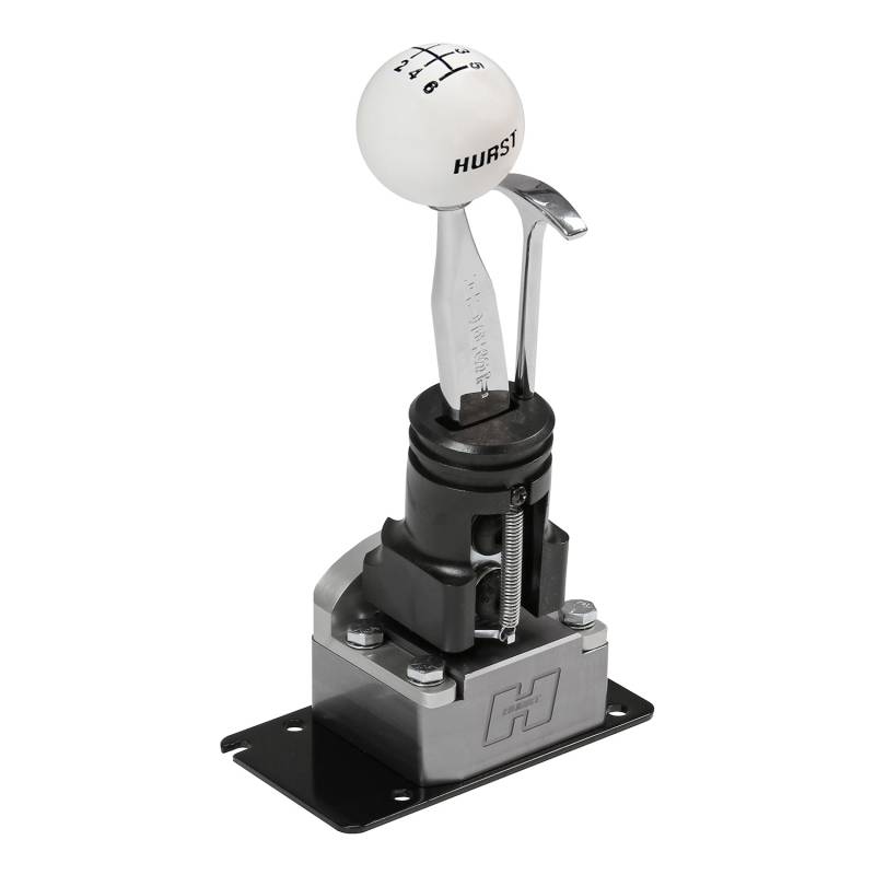 The Hurst® Competition/Plus® shifter for the 2011-2014 Mustang GT, Boss 302 and Base V6 reduces throw reduction by 18% over the stock Mustang shifter. Features include a new billet aluminum base housing, a spherical pivot bearing with Delrin support ring to reduce vibration and noise transmitted through the shifter from the transmission and also a trick looking mini T-handle, that actuates the reverse lock-out to ensure you don't accidentally shift into reverse when you want first gear. Simple to install and includes a chrome flat blade Hurst® stick and classic white 6-speed knob to give your Pony's interior that racing look and feel it deserves.