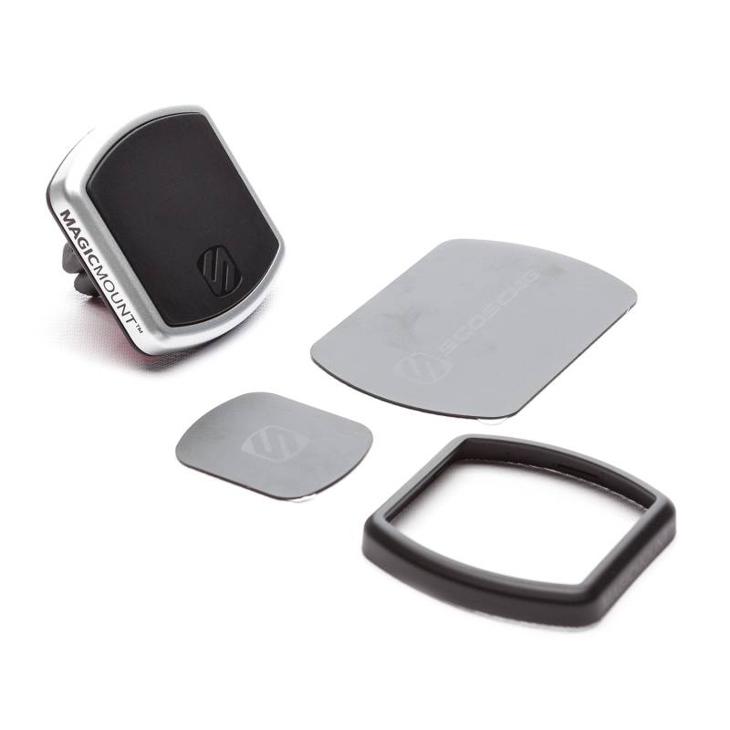 MOBILE DEVICE MOUNT, SCOSCHE MAGICMOUNT? PRO VENT FOR DASHLINK MagicMount Pro Vent is an award-winning system for safely mounting your AutoMeter DashLink equipped mobile device to vehicle HVAC vents for easy driver viewing and hands free operation. Unique cradle-free design uses powerful Neodymium earth magnets that are 100% safe to hold your device securely on the bumpiest roads and spirited driving maneuvers. Hover your mobile device near the magnetic mounting surface to instantly and securely lock it into place. Sleek and versatile design allows for a variety of viewing angles,includes interchangeable trims and two sizes of mounting plates for customization to suit your vehicle and device needs. Does not work with iPod Classic or other hard drive devices. The strong magnetic fields produced by these Neodymium magnets is enough to damage hard drive devices.