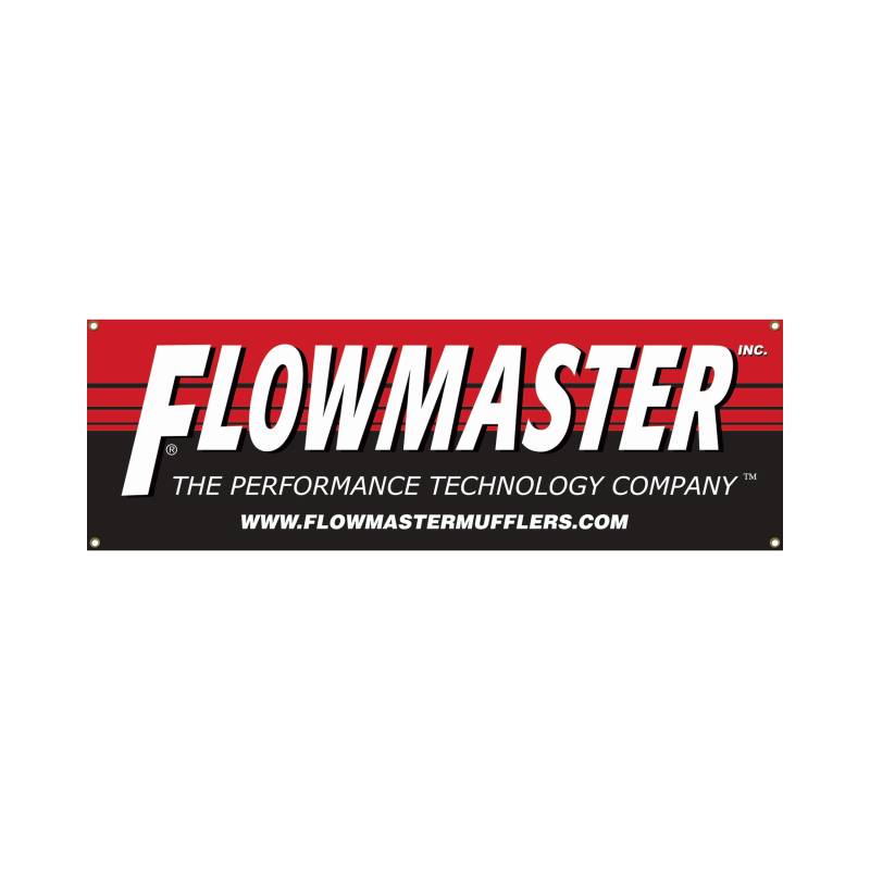 Show off your Flowmaster pride with this highly desirable and great looking Flowmaster banner. Perfect for the garage, the shop, club meetings or hanging trackside. The banner has been updated with the phrase "The Performance Technology Company" to reflect our expansion into leading edge non-exhaust product categories, such as our Delta Force Performance Intakes and Delta Boost electronic tuners, which are designed to maximize performance when combined with Flowmaster exhaust systems as a package. Other banner features include special UV coating to prevent color fading, heavy duty reinforced gromments and 6 foot long leads at all corners for ease of hanging and the banner measures 84 inches long x 24 inches tall.