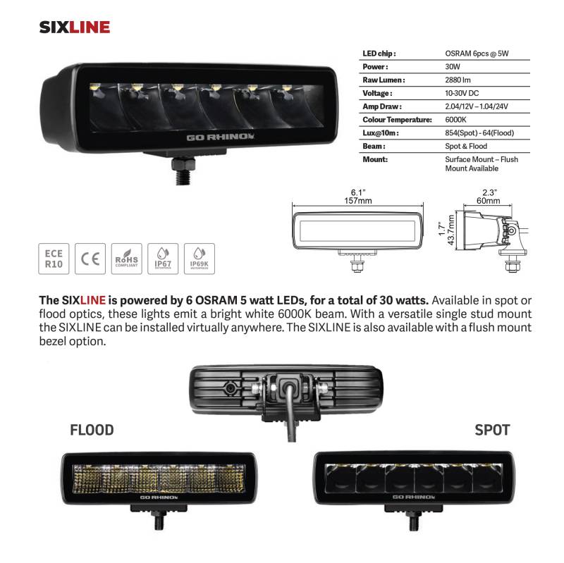 Go Rhino 750300621FBS Blackout Series Sixline LED Flood Light Kit
