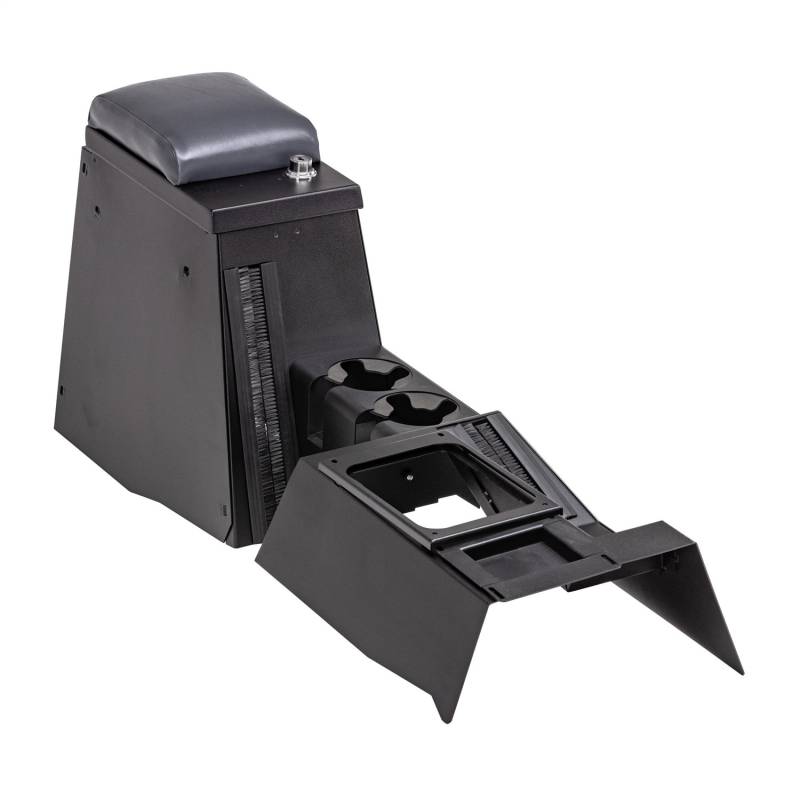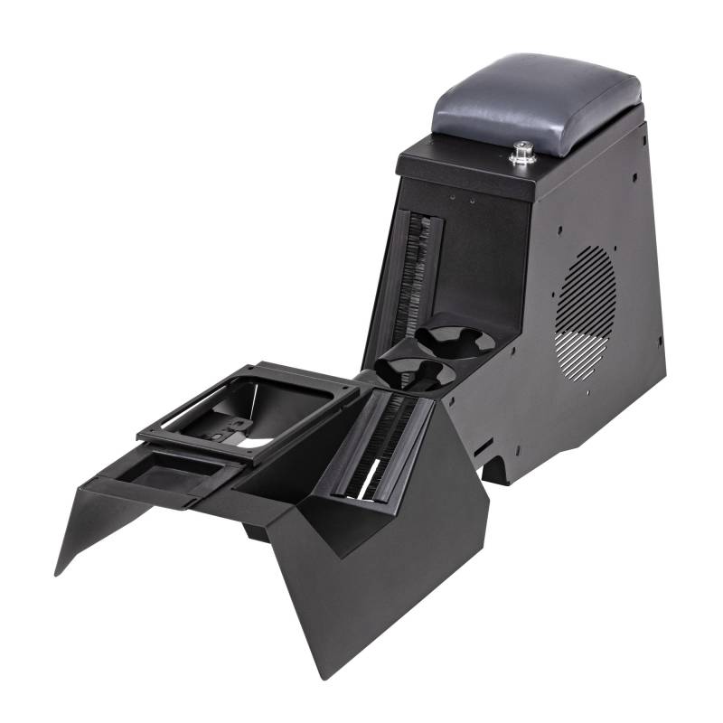 Center Console | Series II Full-Speaker | Jeep Wrangler TJ | 1997-2006 This high security 16 gauge steel console incorporates two oversized drink holders in place of a separate stereo compartment and will accommodate the factory sub-woofer or an aftermarket 8 inch speaker. The front and rear drink holders, padded armrest, and front console for levers are included in this model. The new sleek, custom fit design matches the TJ’s refined interior while offering 2 1/2 times more storage than the factory model.