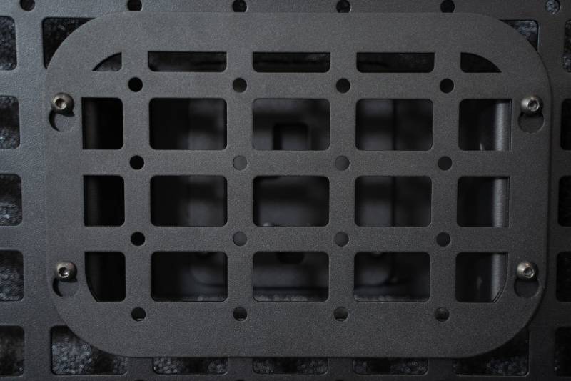 Bed Side Molle Panels - Passenger Full Kit Our Bed Side Molle Panels are versatile for both sides of the truck bed, providing efficient storage that leaves space for larger cargo. They work with various attachment systems and keep tools like shovels, axes, fire extinguishers, and more organized. These panels use factory mounting points to stay sturdy and rattle-free, made from American steel and finished in a hammer black powder coat finish. They fit the truck bed's contours and come with cutouts for tie-down points. Plus, you can access the power source and trailer plug through an additional cutout. They feature a bolt-on installation and are proudly Made in America.