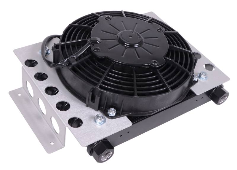 Remote transmission fluid cooler A step up from our Electra-Cool and Econo-Cool Tube & Fin type coolers, the popular Atomic-Cool remote cooler can literally be mounted anywhere available space permits, making it a popular addition for performance cars, hot rods, muscle cars and trucks. Featuring a heavy duty yet compact plate and fin cooler coupled with an 8" High Output electric fan and aluminum brackets. Includes 2 each -6AN male fittings and -8AN male fittings. The Atomic-Cool is perfect for heavy duty towing and hauling to provide a durable, trouble-free way to add years to the life of your transmission. Also recommended for engine, power steering and fuel cooling. Mounts anywhere space permits, Dramatically extends engine and transmission life, High efficiency OEM style Plate & Fin cooler